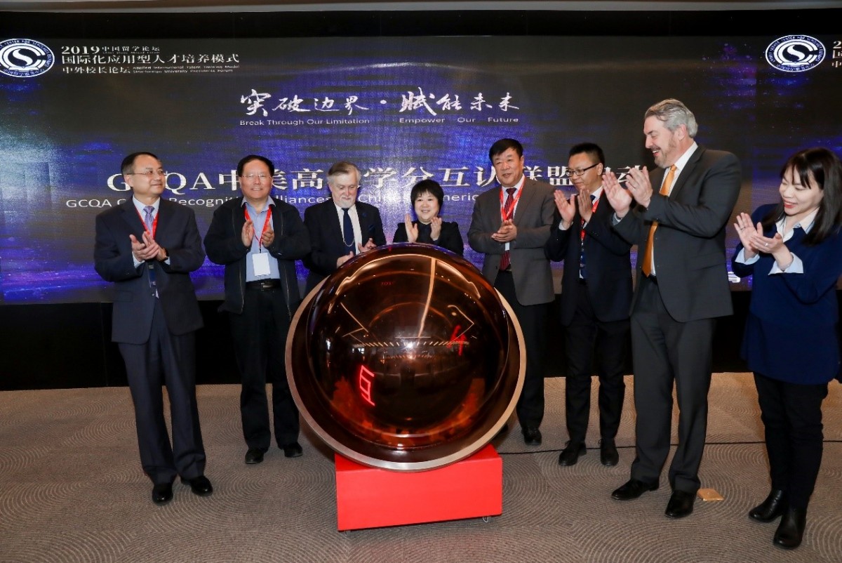 2019年3月21日,由教育部留學服務中心主辦、c7娱乐集團承辦的2019中國留學論壇分論壇——國際化應用型人才培養模式中外校長論壇在北京僑夢苑舉行,來自中國、美國、歐洲、澳洲的高校校長、全球職業與教育品質評估認證機構(GCQA)負責人、外方高校駐華代表處代表以及教育界專家一百多人參加了此次論壇。論壇以“突破邊界、賦能未來”為主題,聚焦應用型人才培養,共同探討中外教育國際合作新模式。此次會議上,全球職業與教育品質評估認證機構(GCQA)與c7娱乐集團聯合發起了中美高校學分互認合作聯盟。